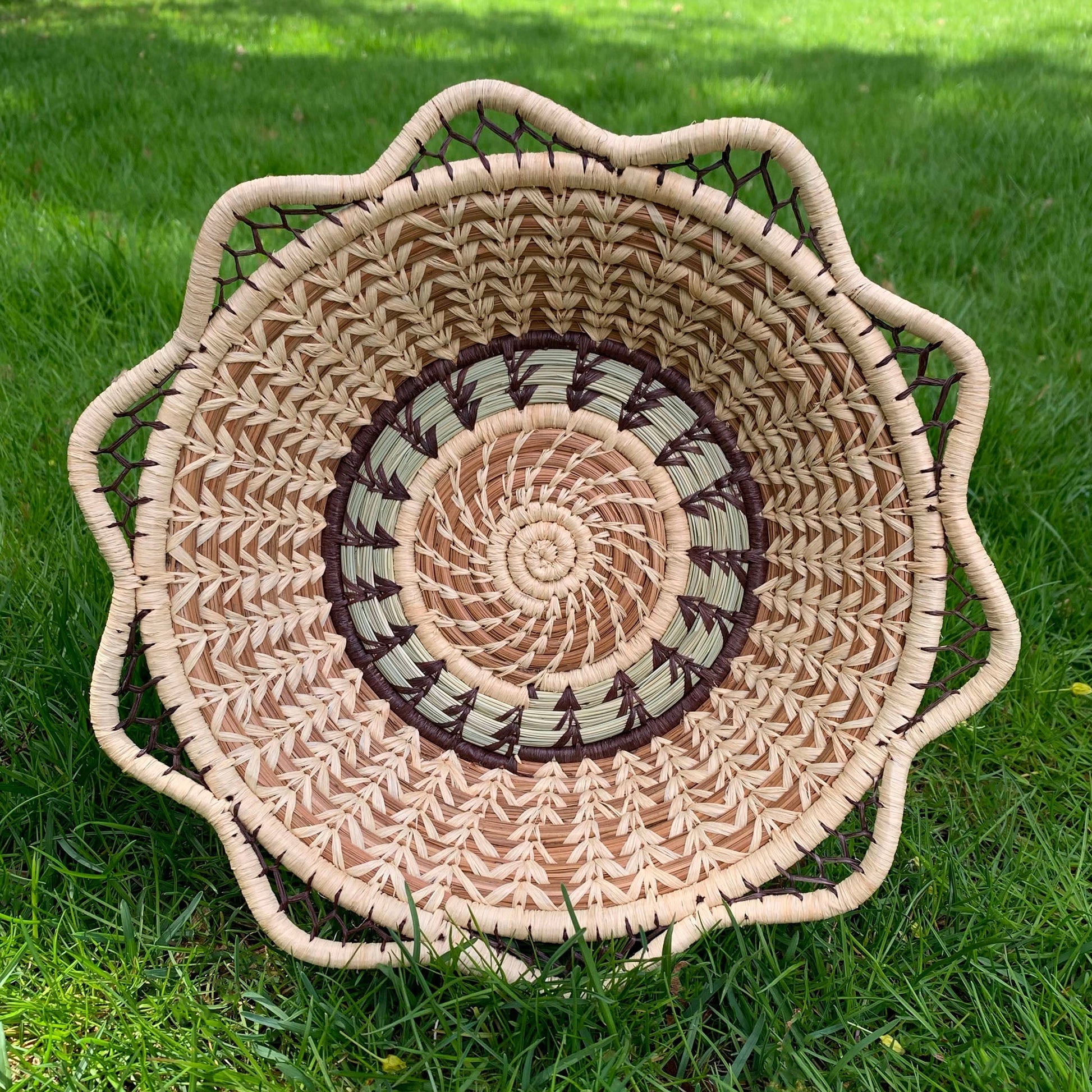 - Native grass, pine needles, raffia