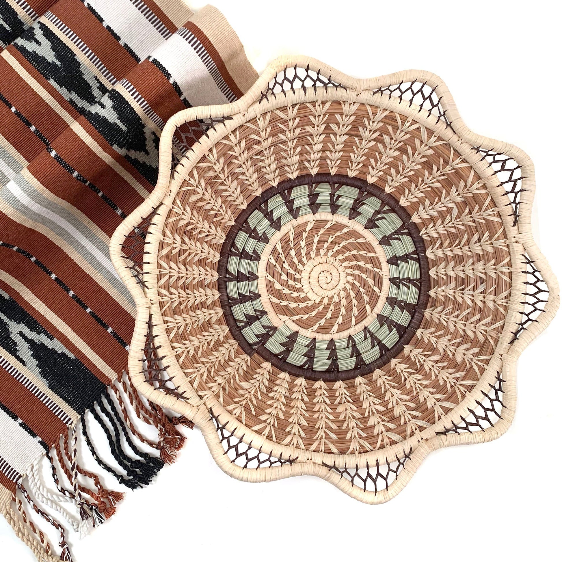 Beautiful Martina Basket is delicately handwoven of pajón, a native grass of the Guatemalan Highlands, and sustainably harvest longleaf pine needles with raffia accents. Designed and handmade by the women of Mayan Hands El Triunfo cooperative, this basket is a wonderful wall or tabletop accent, but was designed to be used!